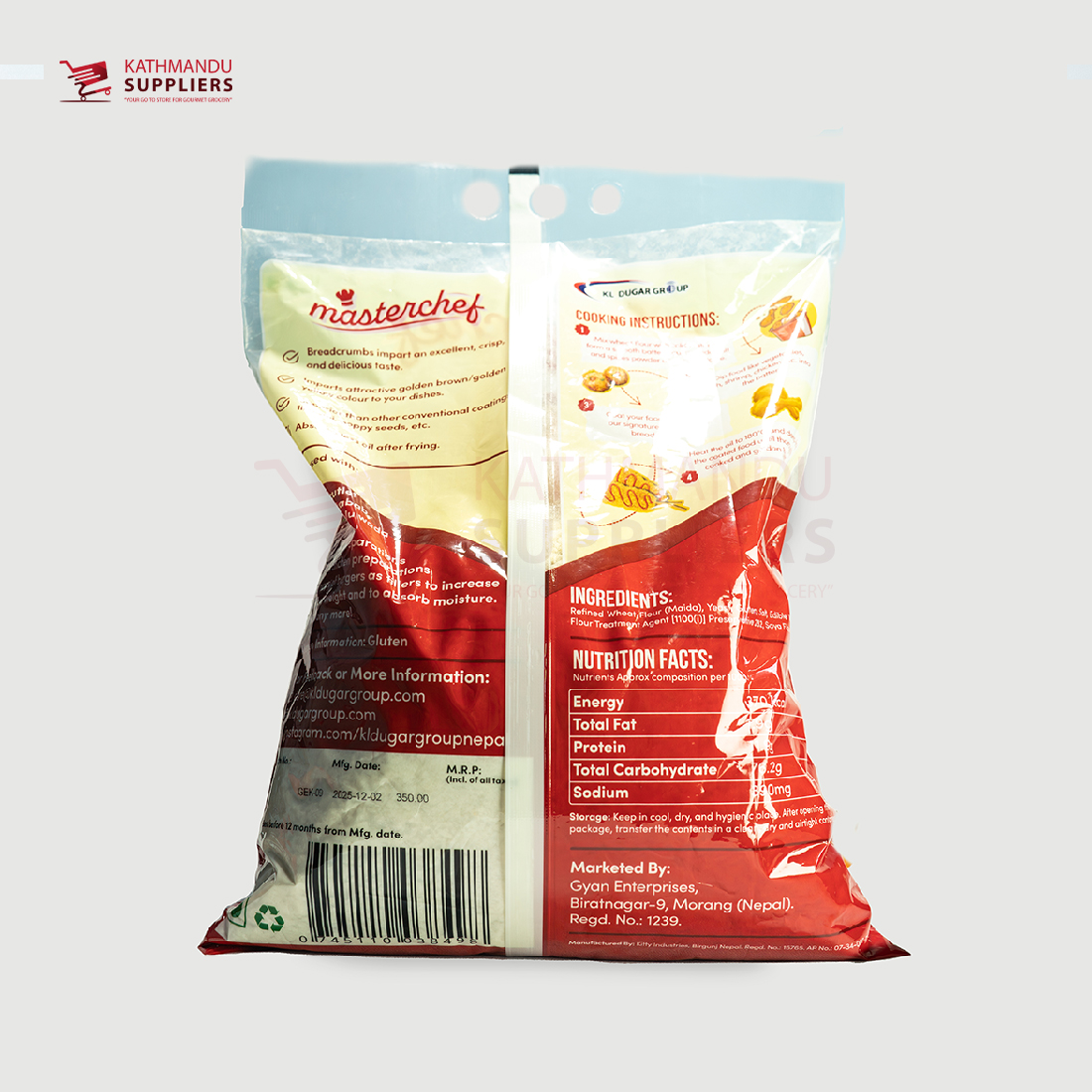Designed for superior crispiness, Masterchef Breadcrumbs provide a light, golden texture while maintaining the natural taste of your ingredients. Their special formula ensures even coating and excellent adhesion for meats, seafood, vegetables, and snacks. With 11.9g protein, no artificial color, and no MGO, they are a reliable choice for restaurants, cafés, fast-food outlets, and households seeking quality and performance.Available at Shree Kathmandu Suppliers.